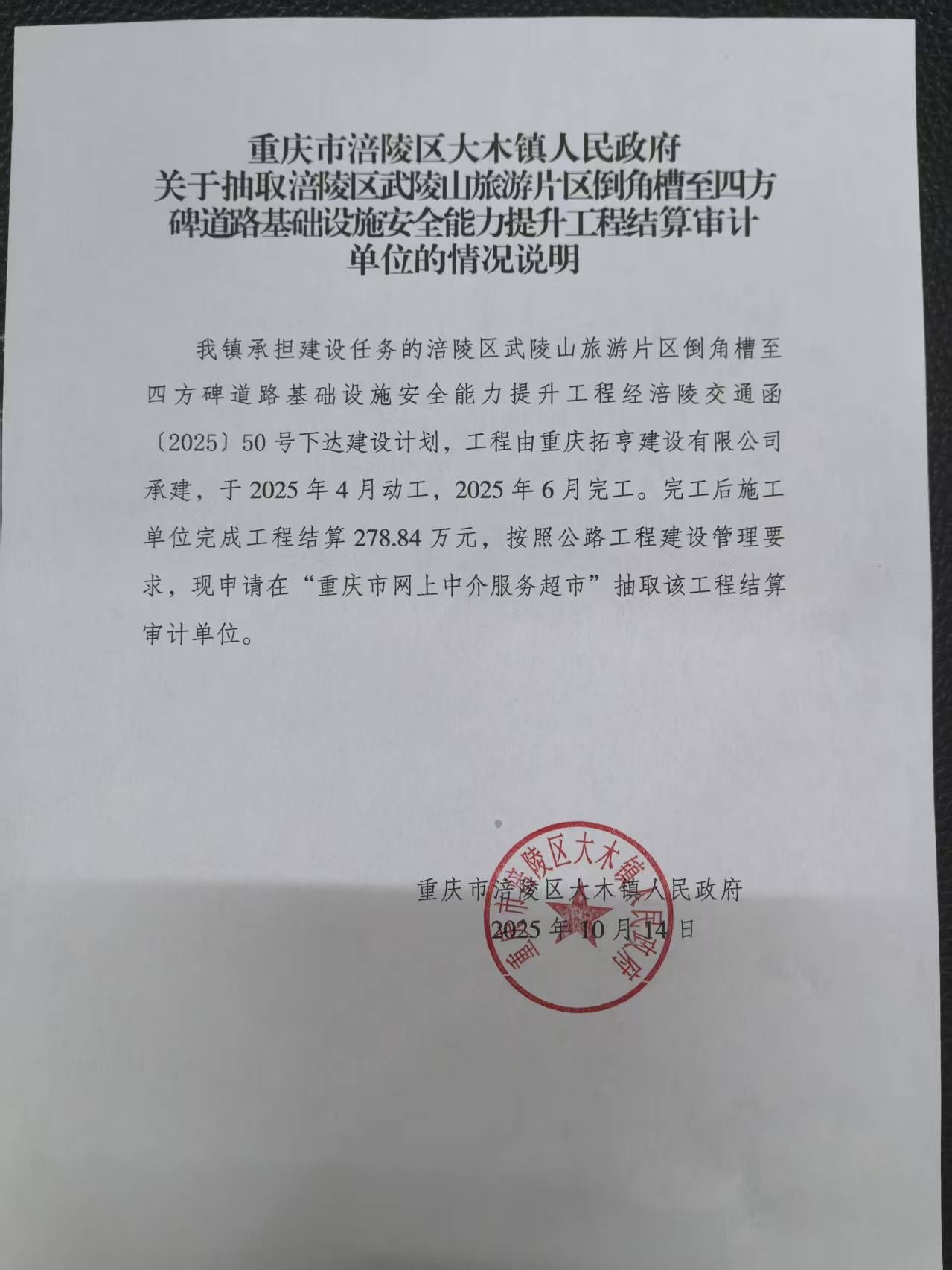 关于为【涪陵区武陵山旅游片区倒角槽至四方碑道路基础设施安全能力提升工程】 公开选取【工程造价咨询】机构的公告