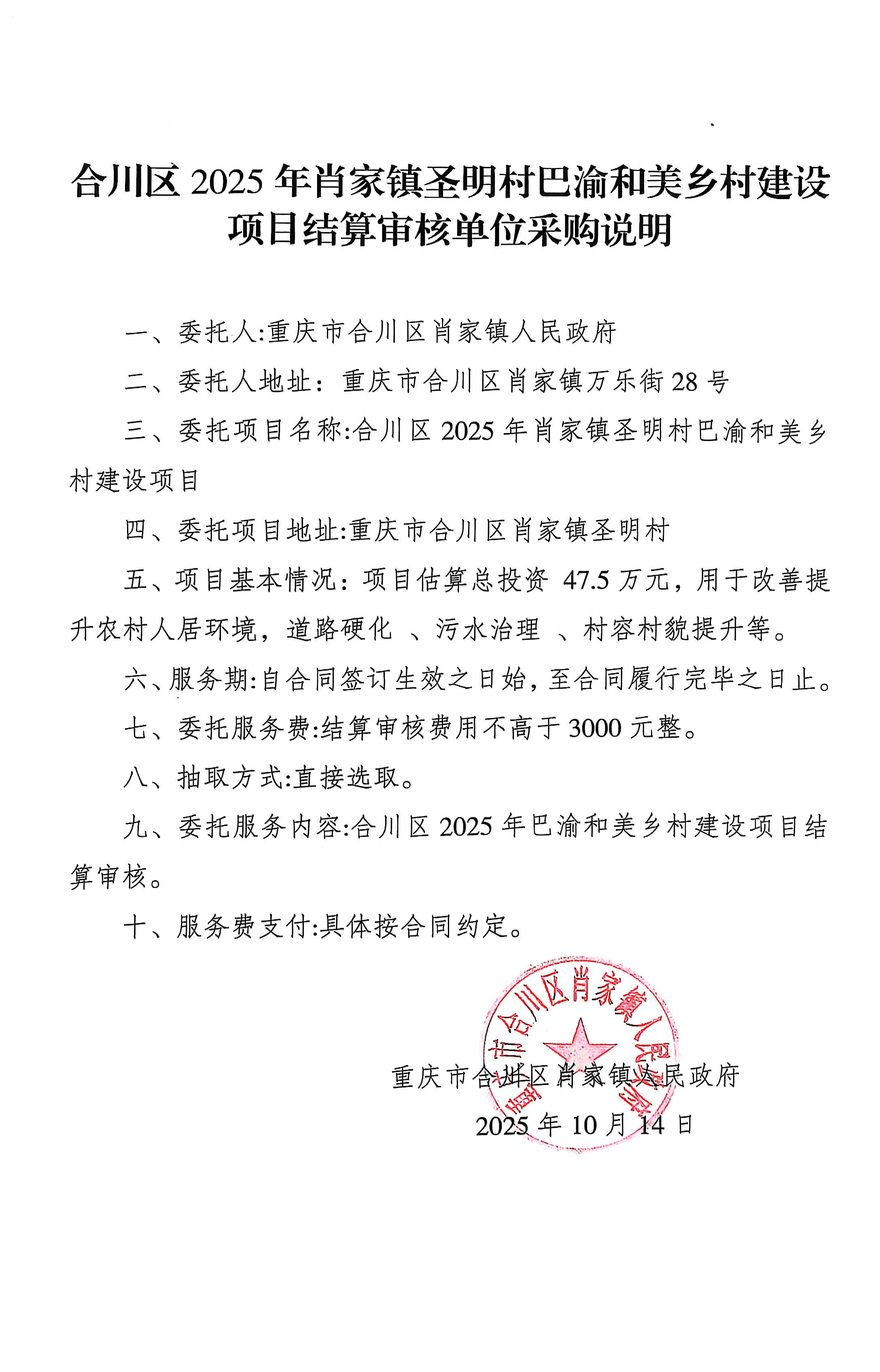 服务内容 | 合川区 2025 年肖家镇圣明村巴渝和美乡村建设项目结算审核 |