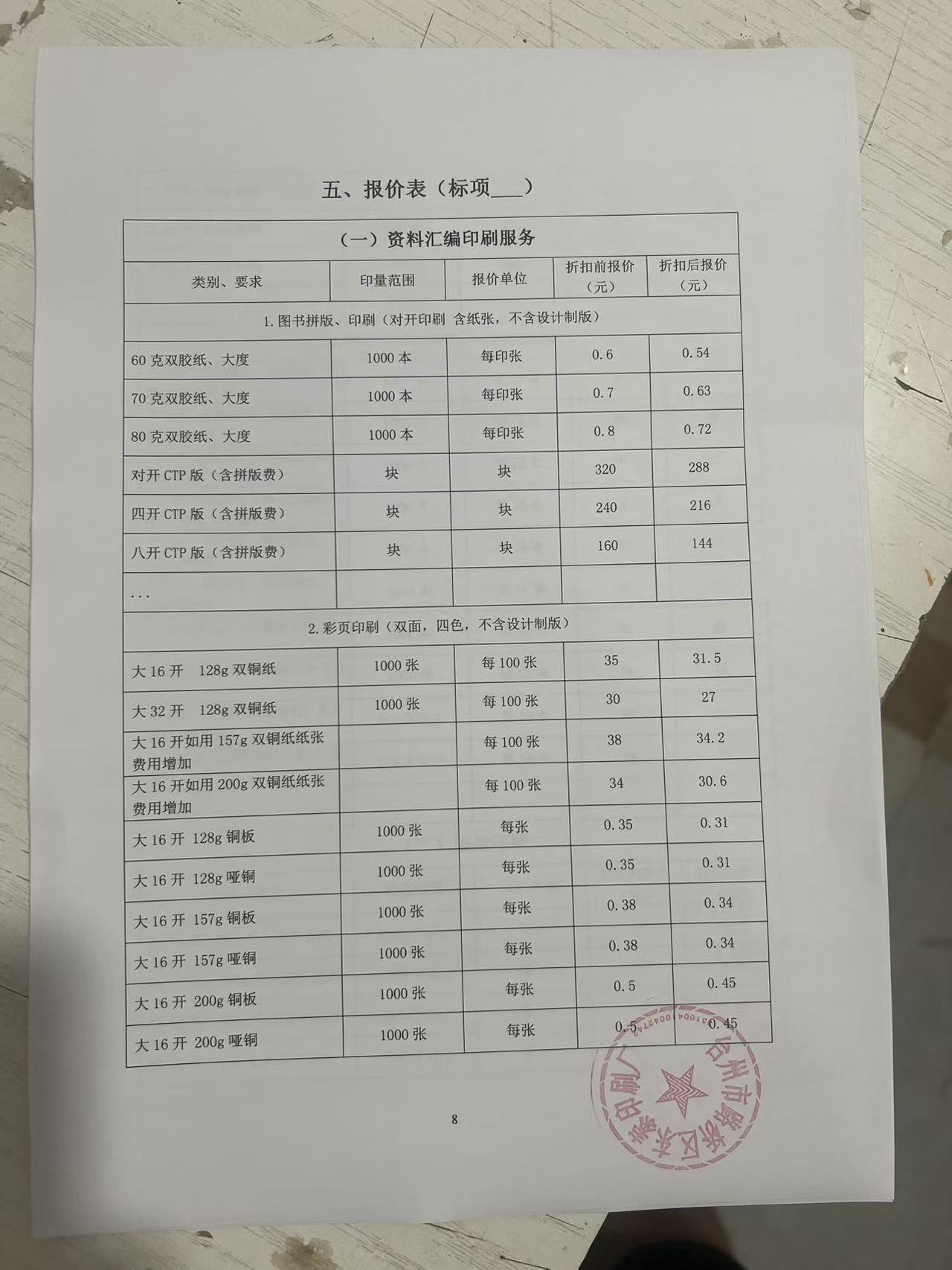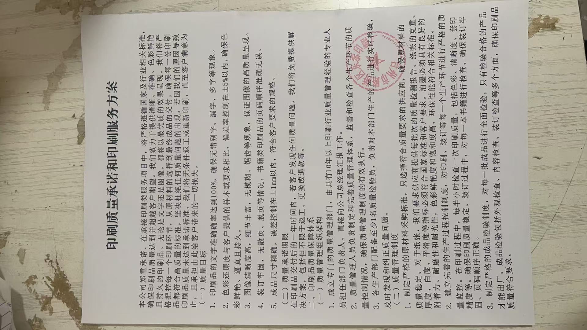 印刷服务方案及售后服务方案:折扣率 90%