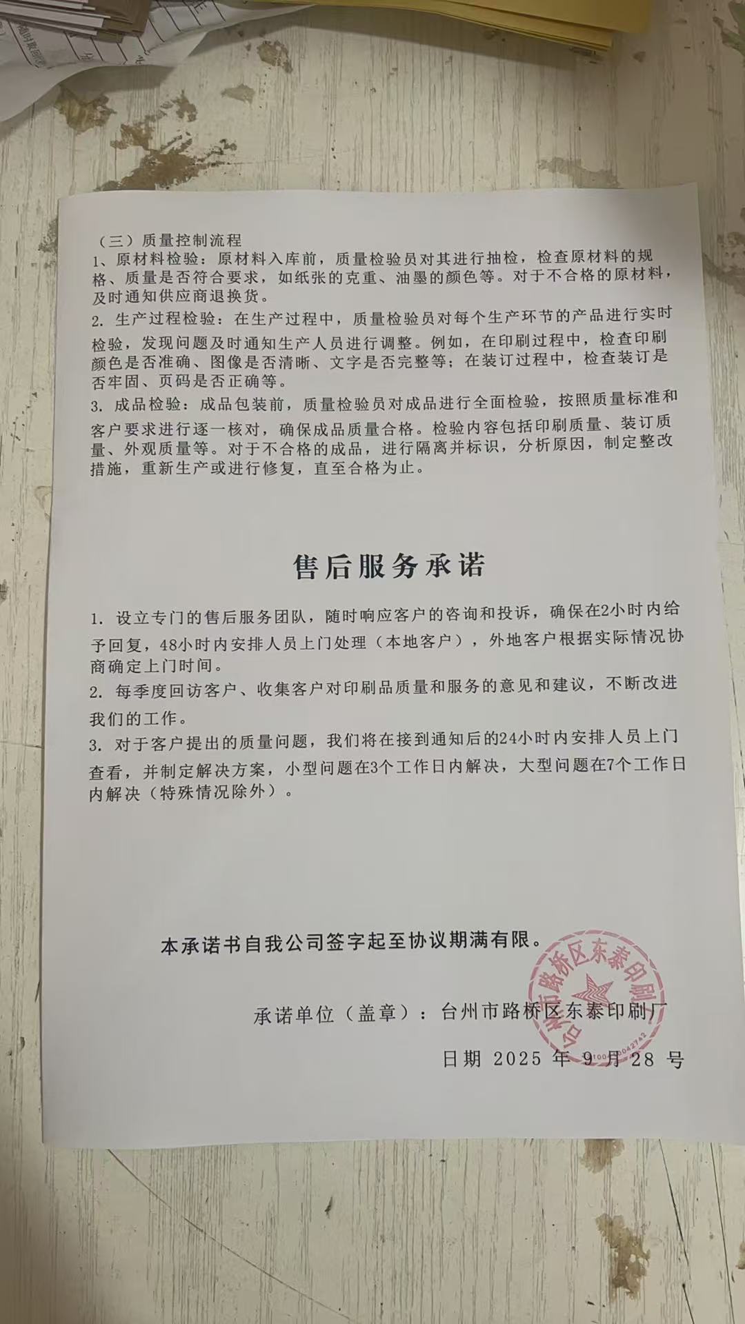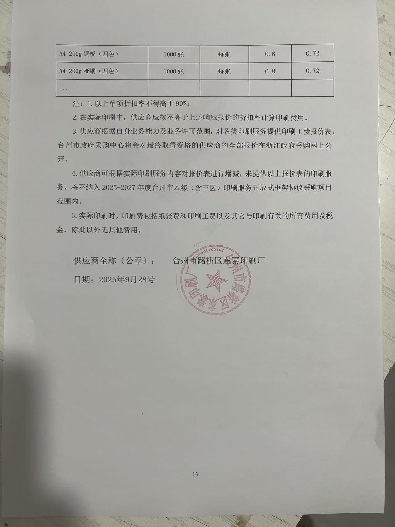 供应商名称:台州市路桥区东泰印刷厂
