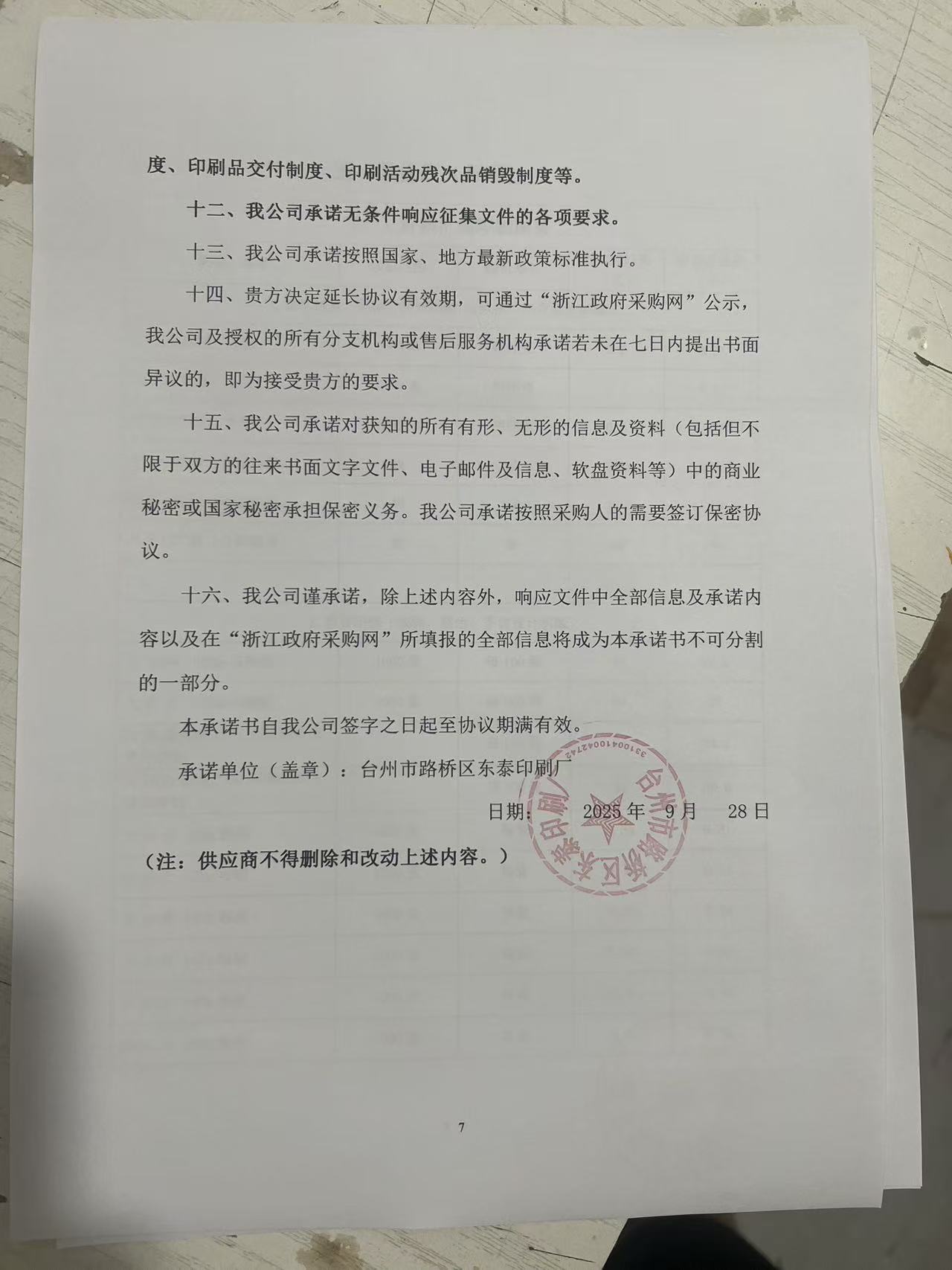入围商品标项名称 入围商品名称 入围商品规格型号/服务描述 入围商品价格 印刷服务(其他印刷品) 台州市路桥区东泰印刷厂印刷服务(其他印刷品) 承诺书: